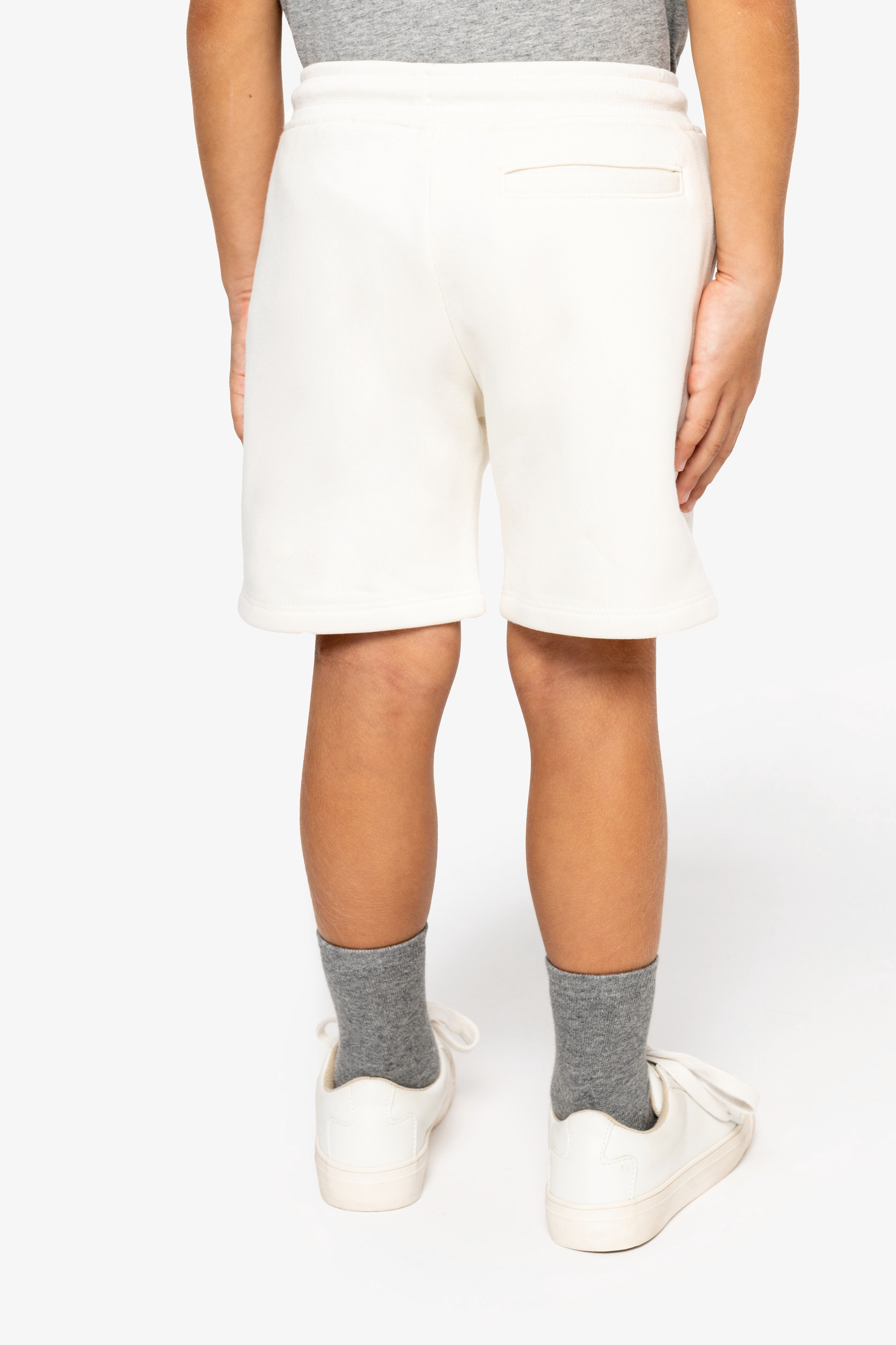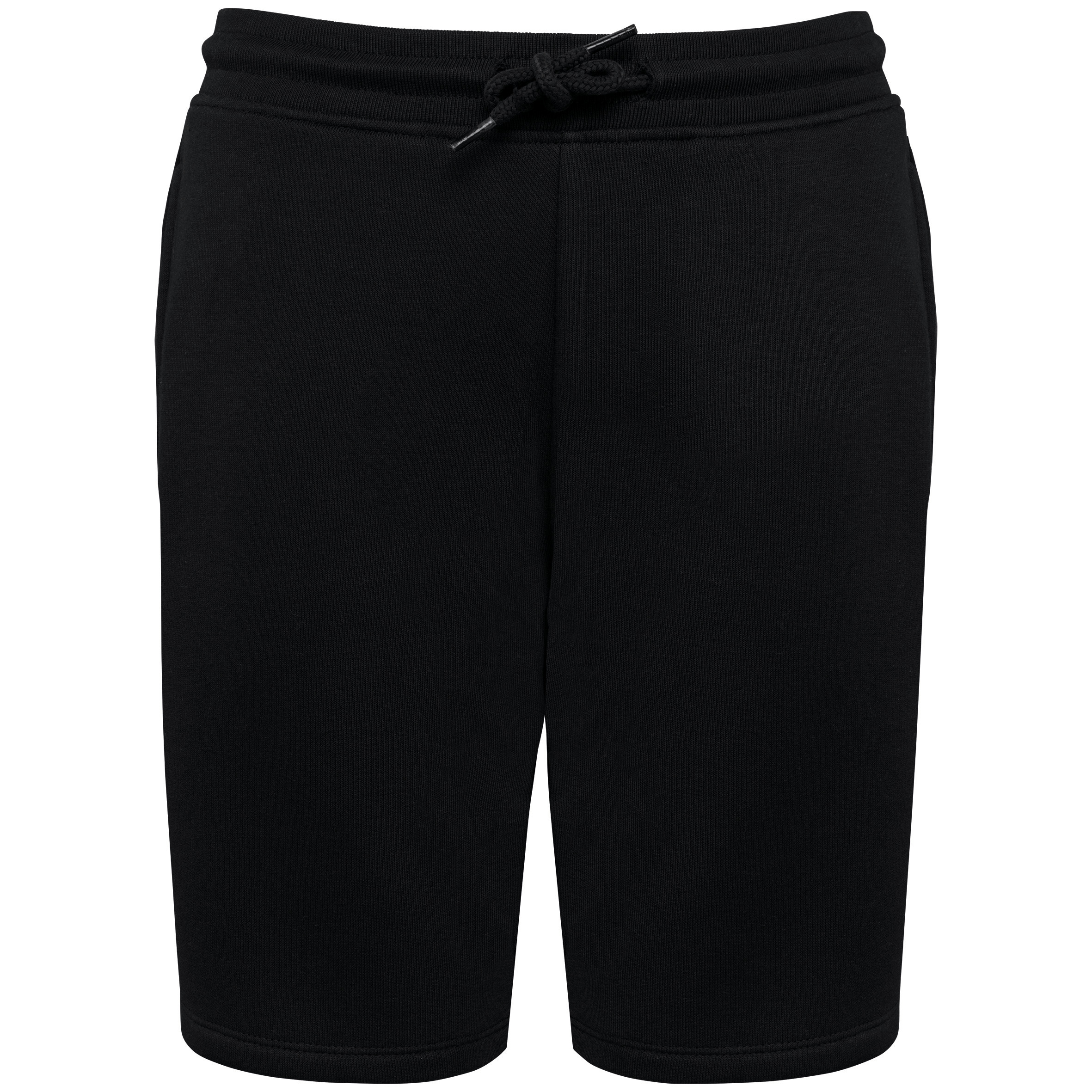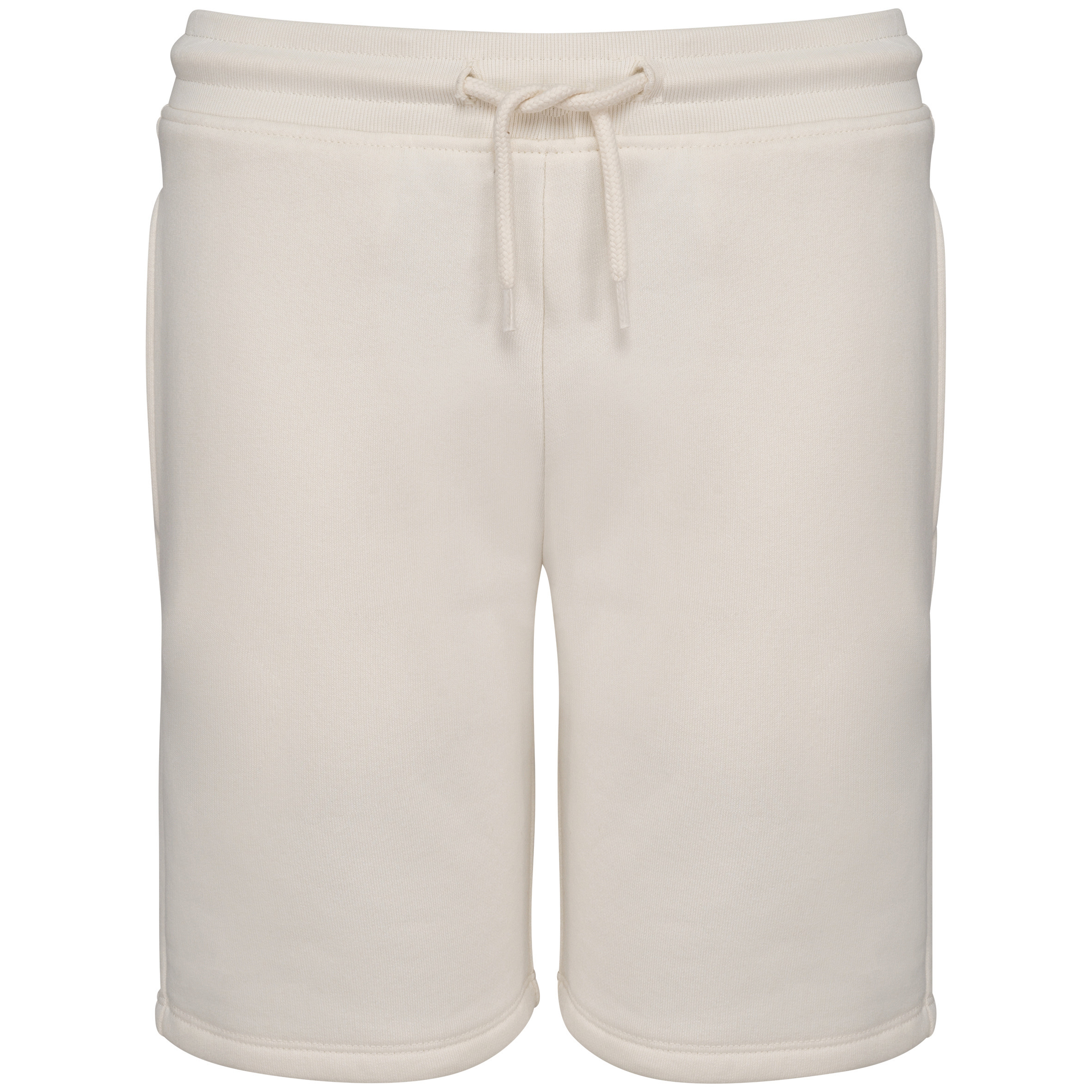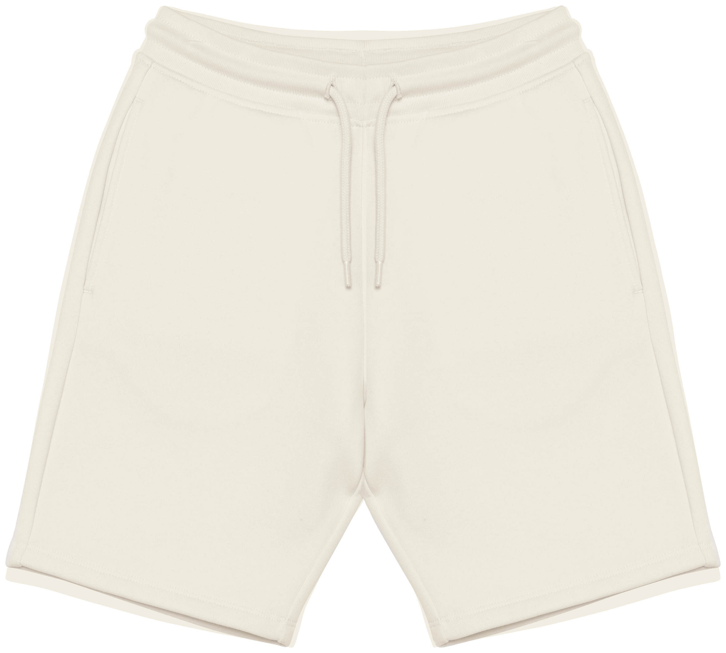 85% algodão biológico / 15% poliéster reciclado pós-consumo. Algodão penteado. Interior cardado 3 fios LSF (Low Shrinkage Fleece: interior pré-encolhido). Banho de enzimas. Cintura elástica com malha rib 1 x 1 com cordão de ajuste redondo em algodão biológico. Ilhó para cordão na cintura. Bolsos laterais e um bolso traseiro placado. Bainha das pernas com pesponto duplo.
