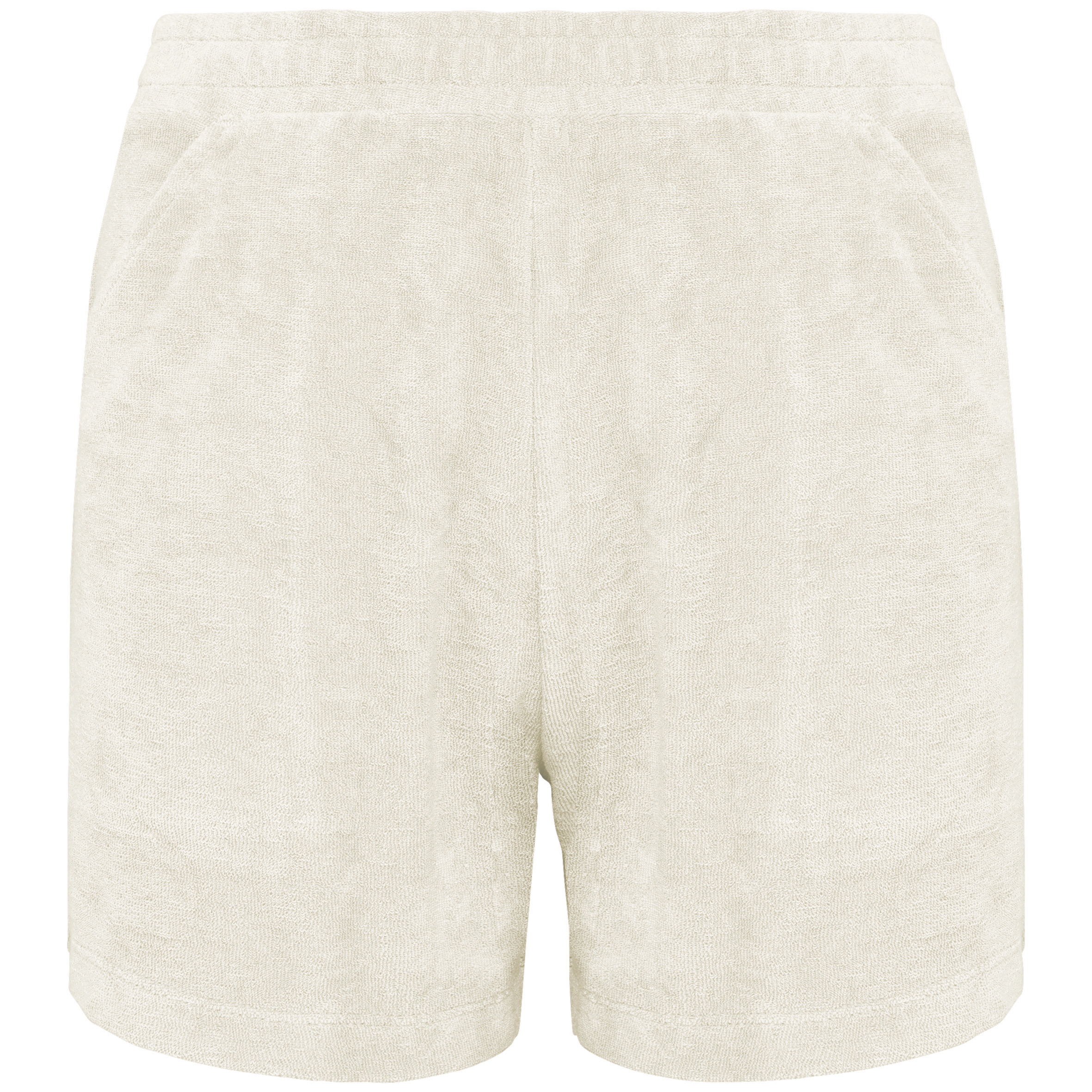 Fabricado em Portugal. 80% algodão biológico e 20% poliéster reciclado pós-consumo. Algodão penteado. Material turco. Com banho de enzimas. Cintura no material principal com cintura elástica. Dois bolsos frontais laterais com pesponto na abertura do bolso. Costura simples na bainha.