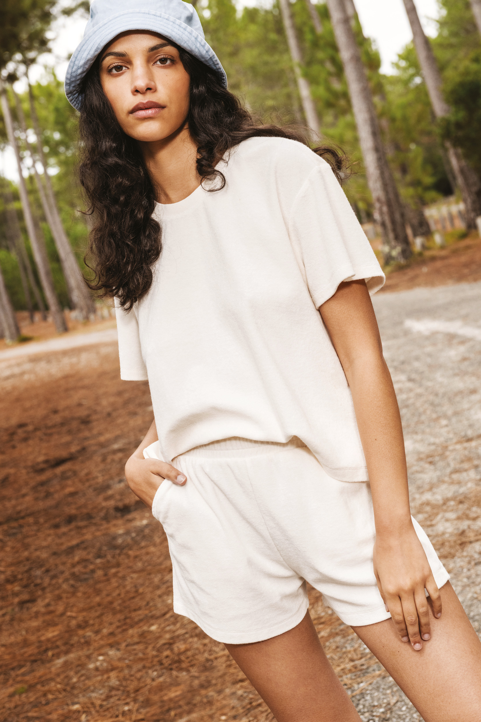 80% algodão biológico / 20% poliester reciclado pós-consumo. Fabricada em Portugal. Algodão penteado. Material turco. Banho de enzimas. Cintura elástica. Dois bolsos laterais.