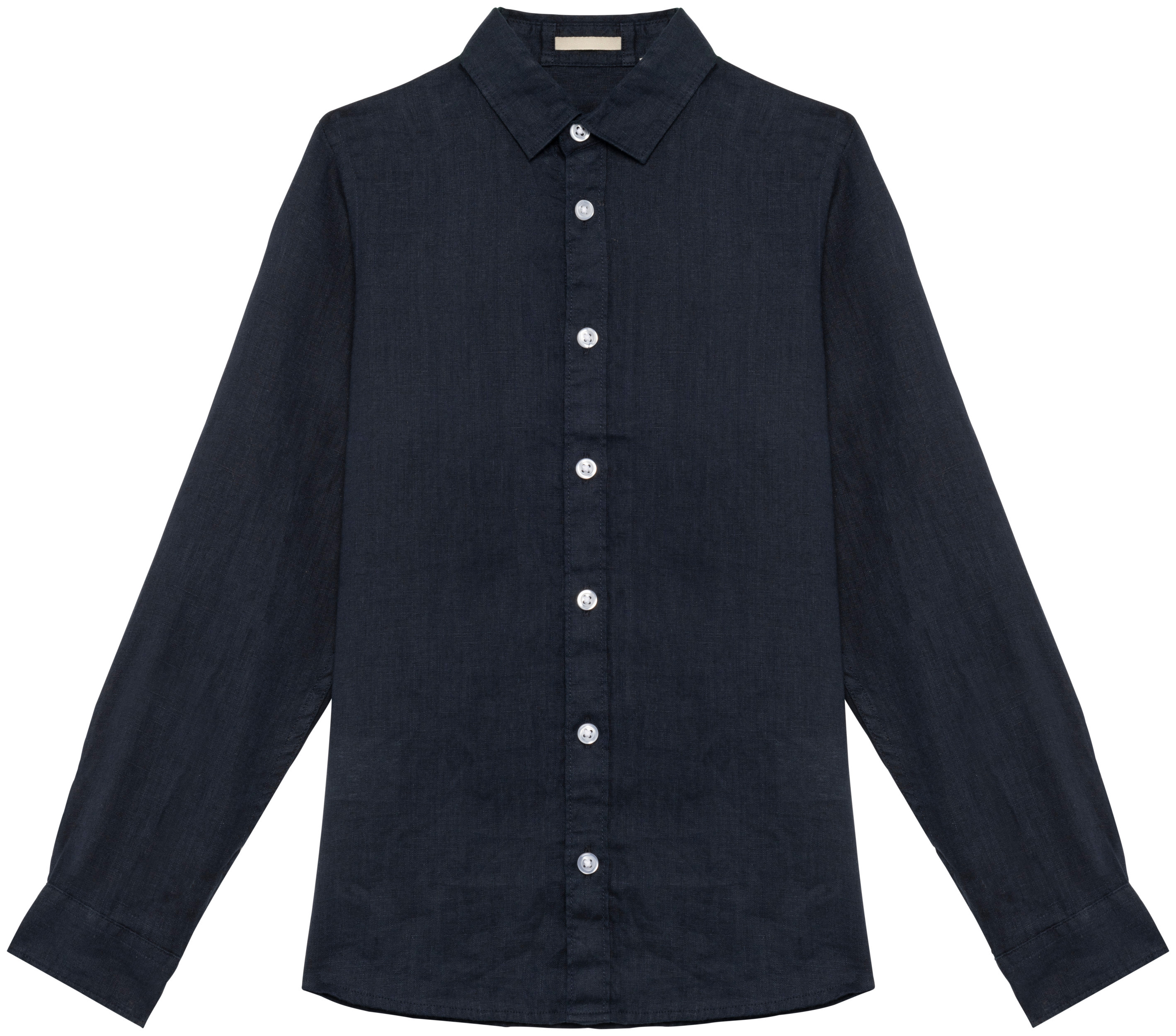 100% linho. Tecida. Corte justo. Costuras laterais. Carcela com botões com efeito nacarado em plástico reciclado. Banda interior no colarinho em chevron. Encaixe nas costas. Carcela nos punhos arredondados com botões. Bainha simples na parte inferior da peça Carcela debaixo dos braços com pesponto duplo. Peça lavada após montagem, as cores podem variar de produto para produto.