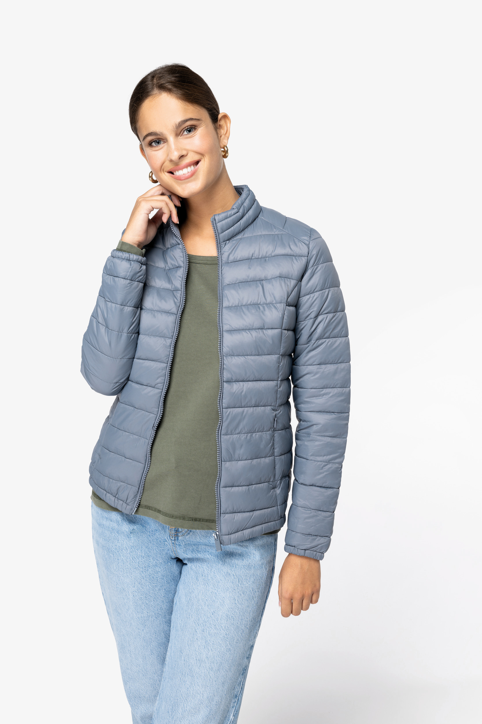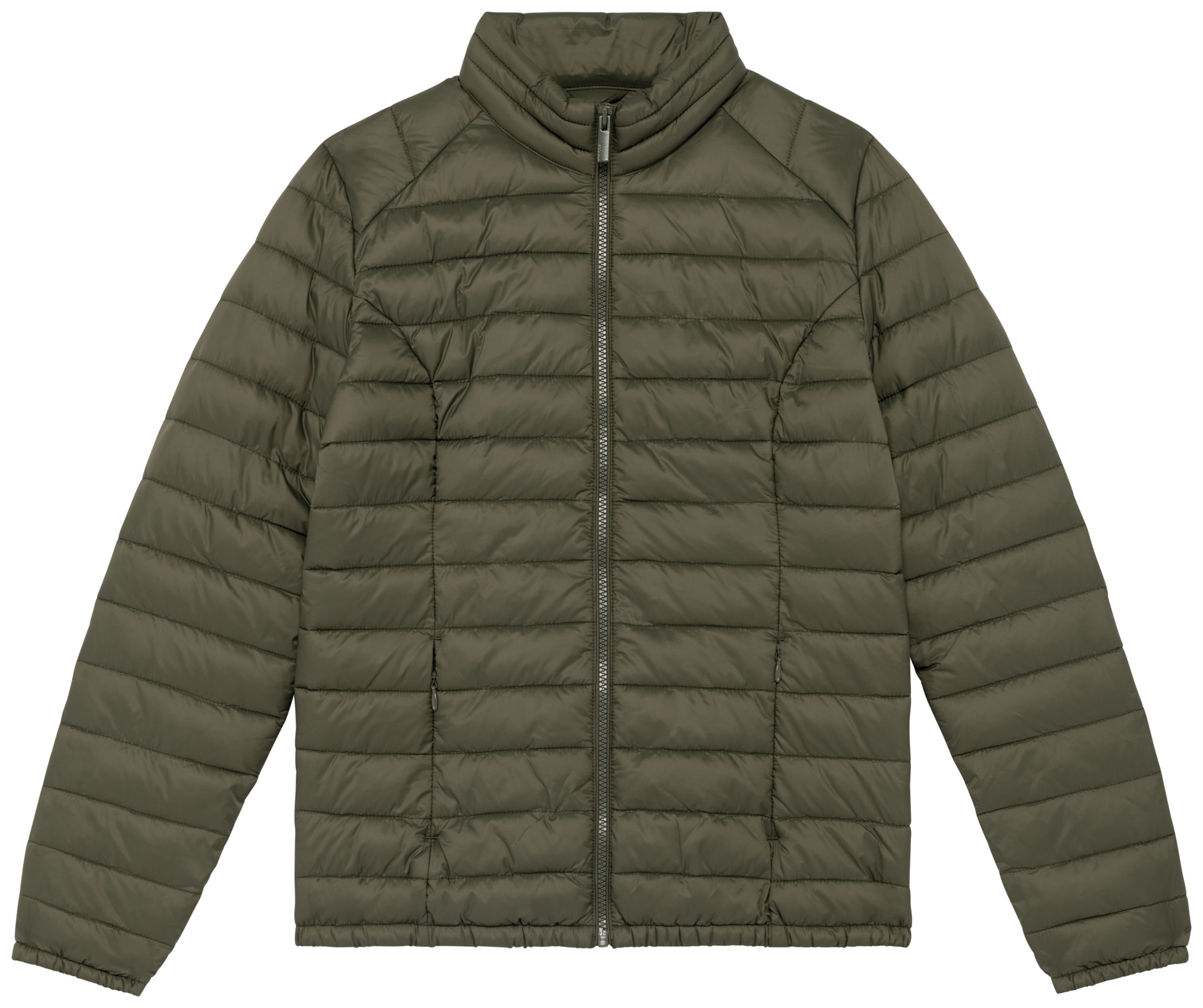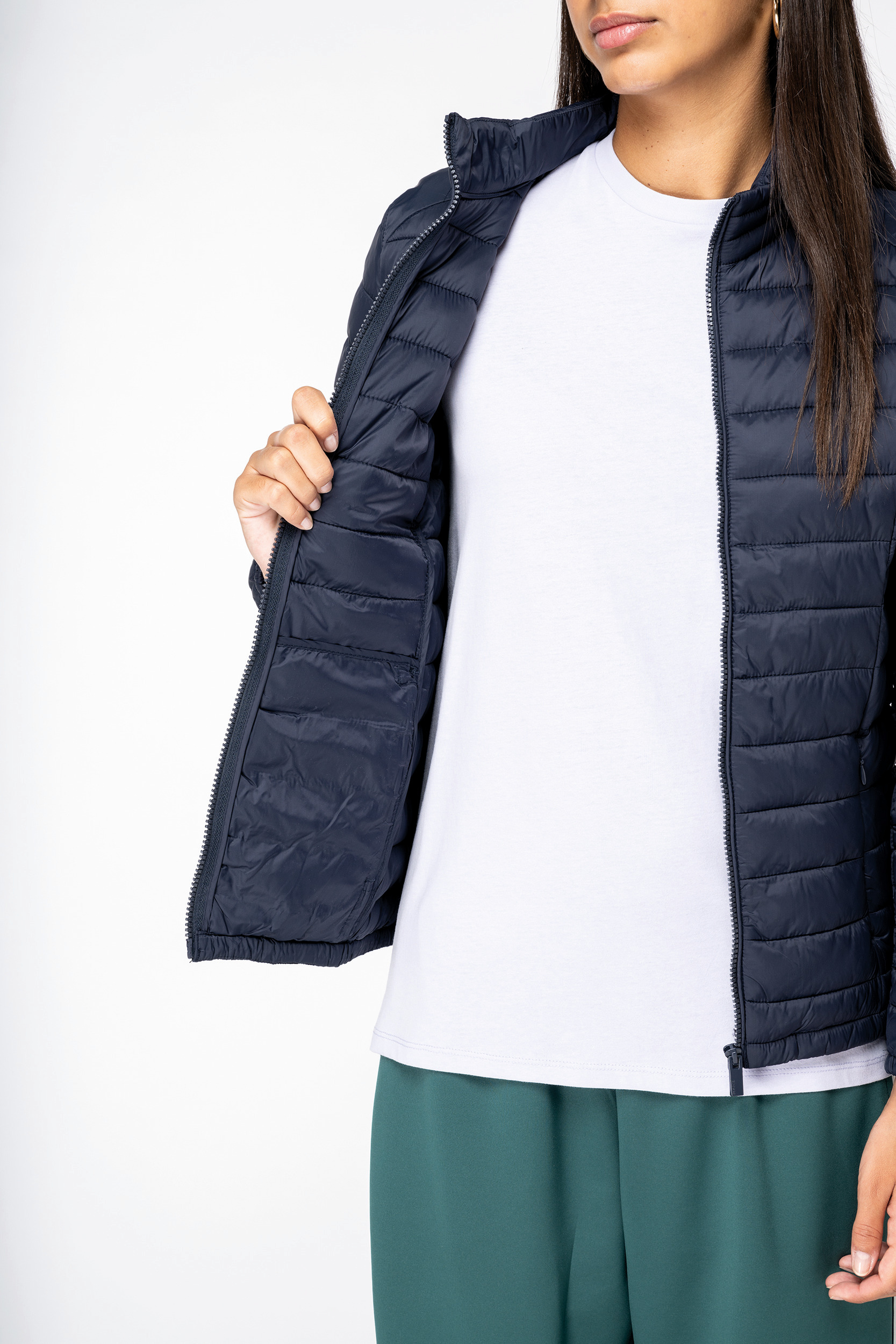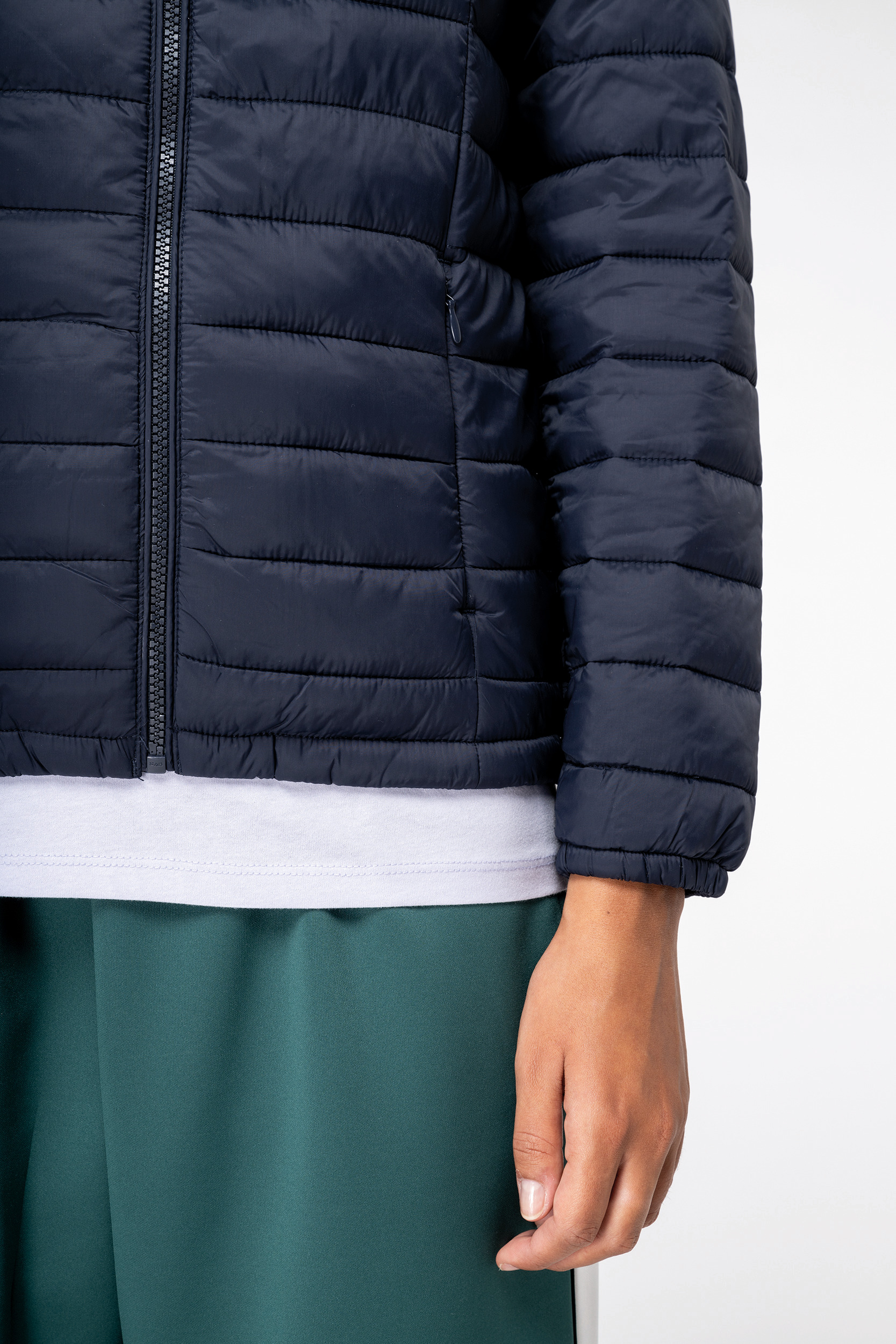 100% poliamida reciclada. Enchimento com efeito de penas em 50% Sorona® e 50% poliéster reciclado. Corte direito ligeiramenta cintado. Toque suave e liso. Tecido repelente à água nível 4 e corta-vento 3 mm/s. Gola subida. Dois bolsos laterais com fechos invisíveis em nylon reciclado. Dois bolsos interiores. Fecho principal em plástico reciclado tom sobre tom. Cós e punhos elásticos. Encaixes laterais e nos ombros. Entregue com saco para guardar. Largura entre os pespontos: 4,5 cm. Peso médio do tamanho M: 360g.